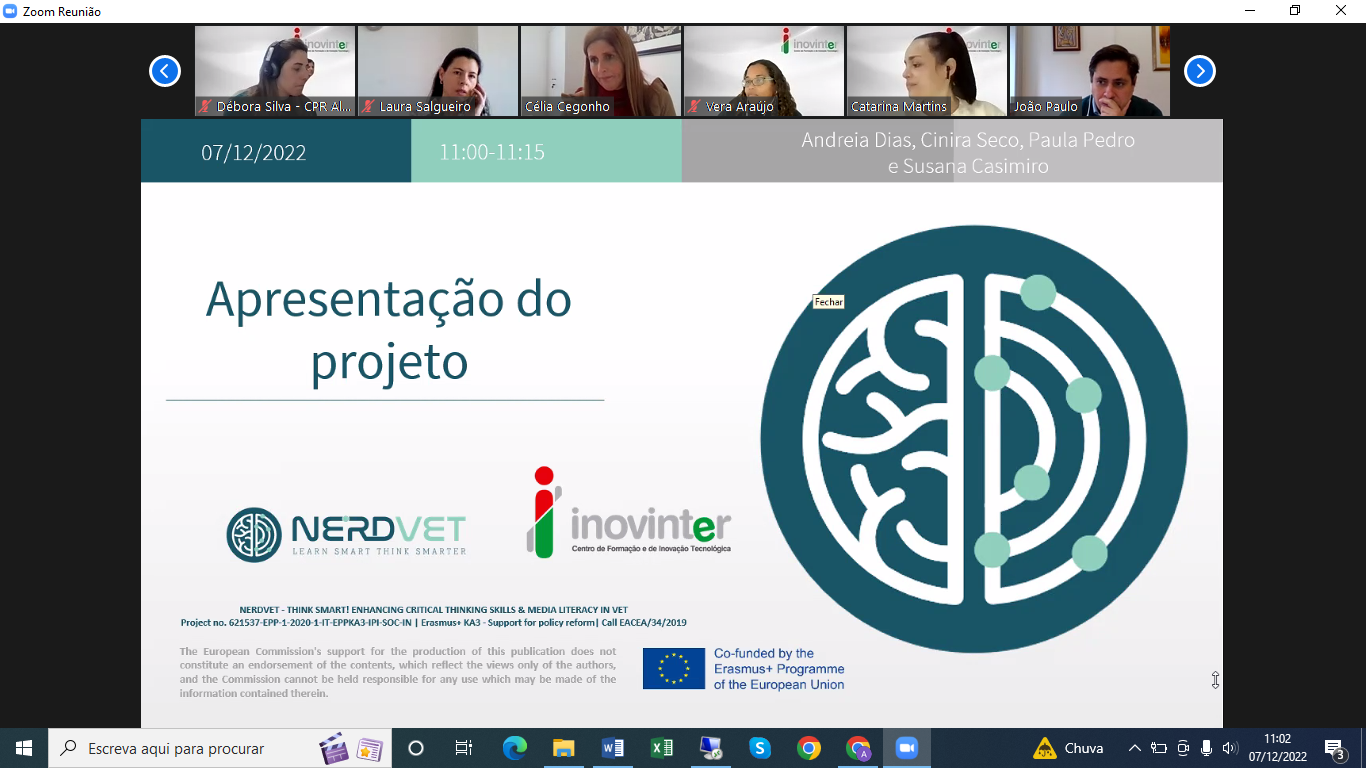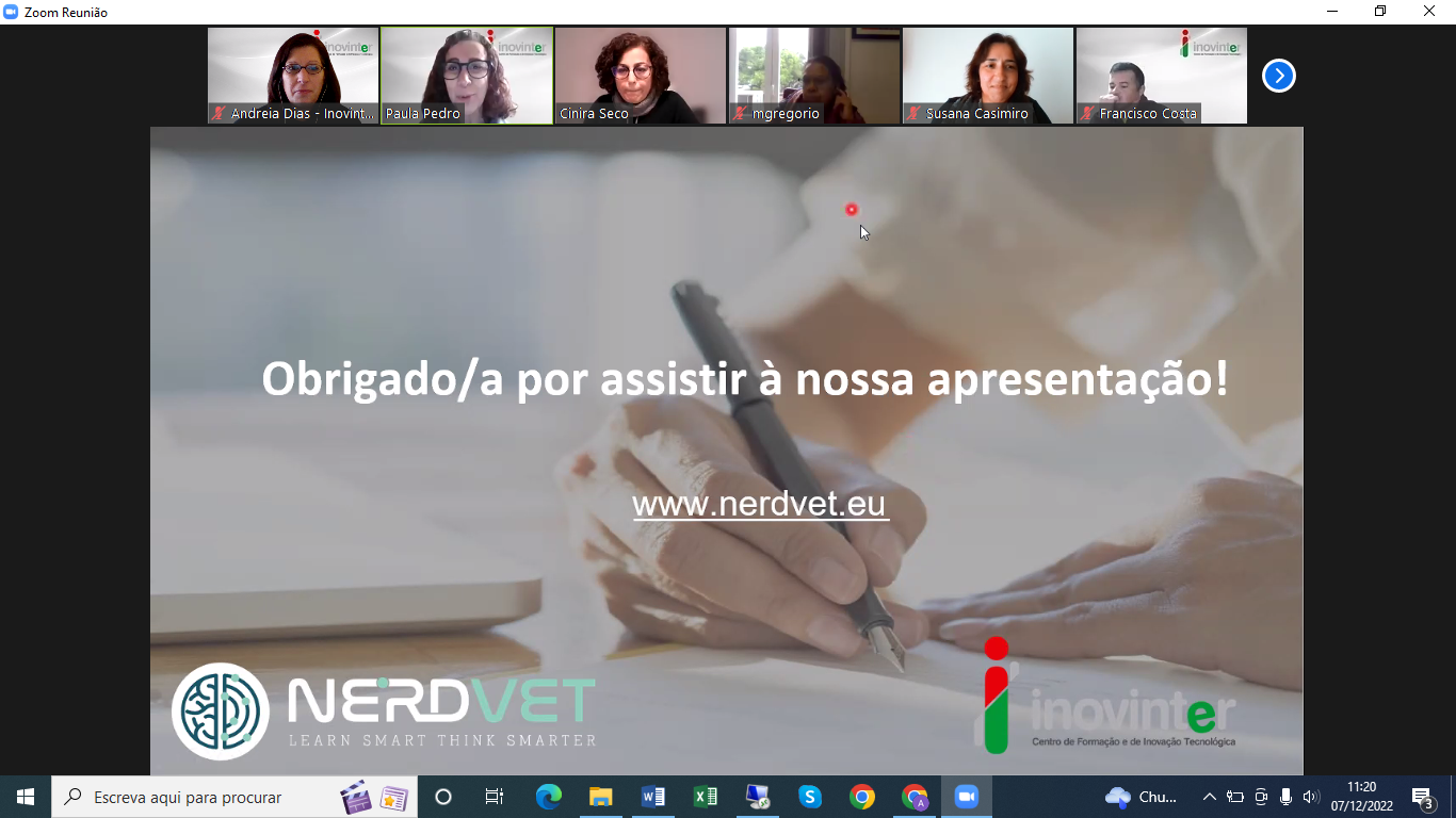 Αναζητώντας τη συμμετοχή στο έργο του προσωπικού της Inovinter, η ομάδα των 4 στοιχείων που εργάστηκε σε αυτό το έργο παρουσίασε τους στόχους του NERDVET, τη σύνθεση της εταιρικής σχέσης, τις δραστηριότητες που πραγματοποιήθηκαν και πρόκειται να πραγματοποιηθούν, τις δραστηριότητες και το υλικό για διάδοση και τον προϋπολογισμό στήριξης για την εκτέλεση όλων των δραστηριοτήτων.