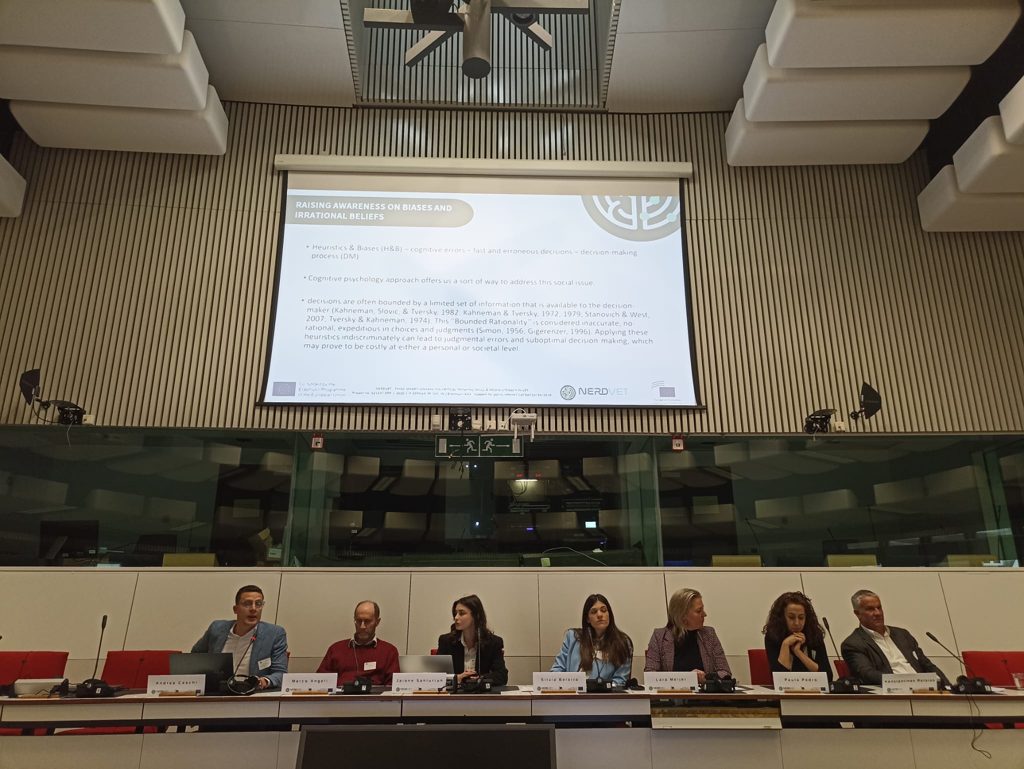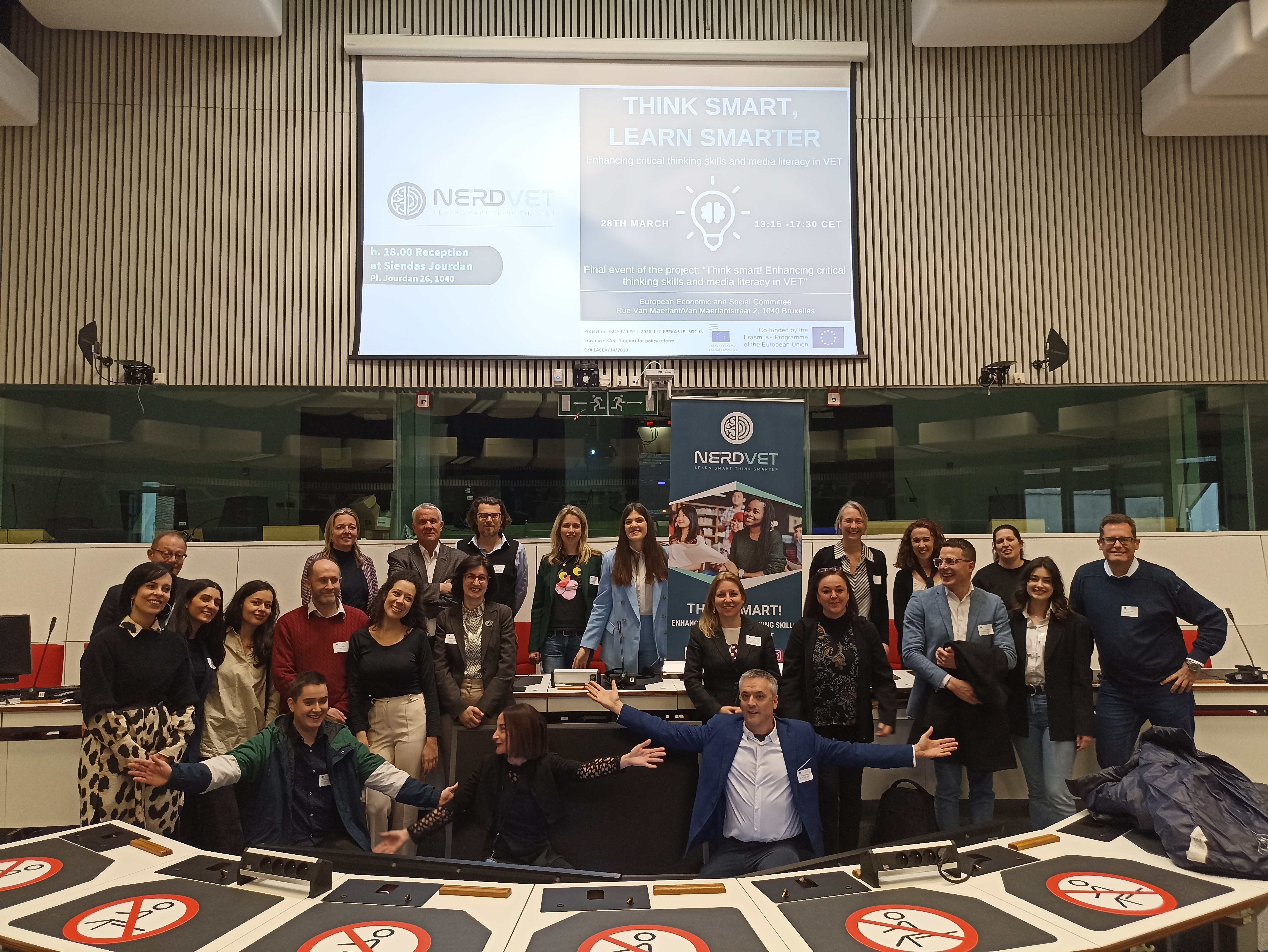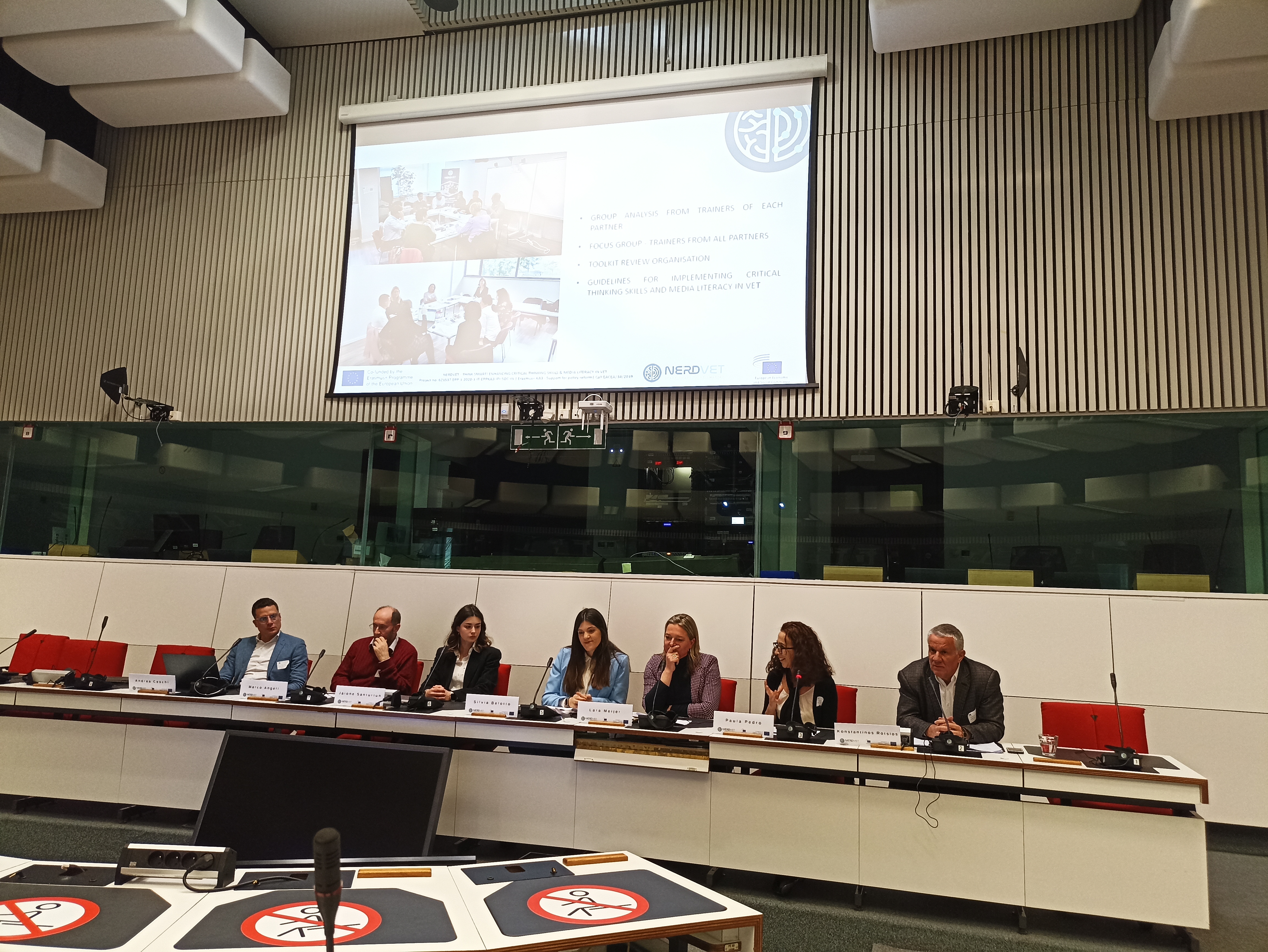 On March 28th, the European Economic and Social Committee hosted the NERDVET project final event, opened by the President of EVTA, Giorgio Sbrissa, and the Director and Secretary General, who welcomed the audience and highlighted the importance of the event for VET. This was followed by a keynote speech from Tatjana Babrauskiene, a Section for Employment, Social Affairs, and Citizenship member, who set the tone for the meeting by introducing the topics of critical thinking and media literacy.