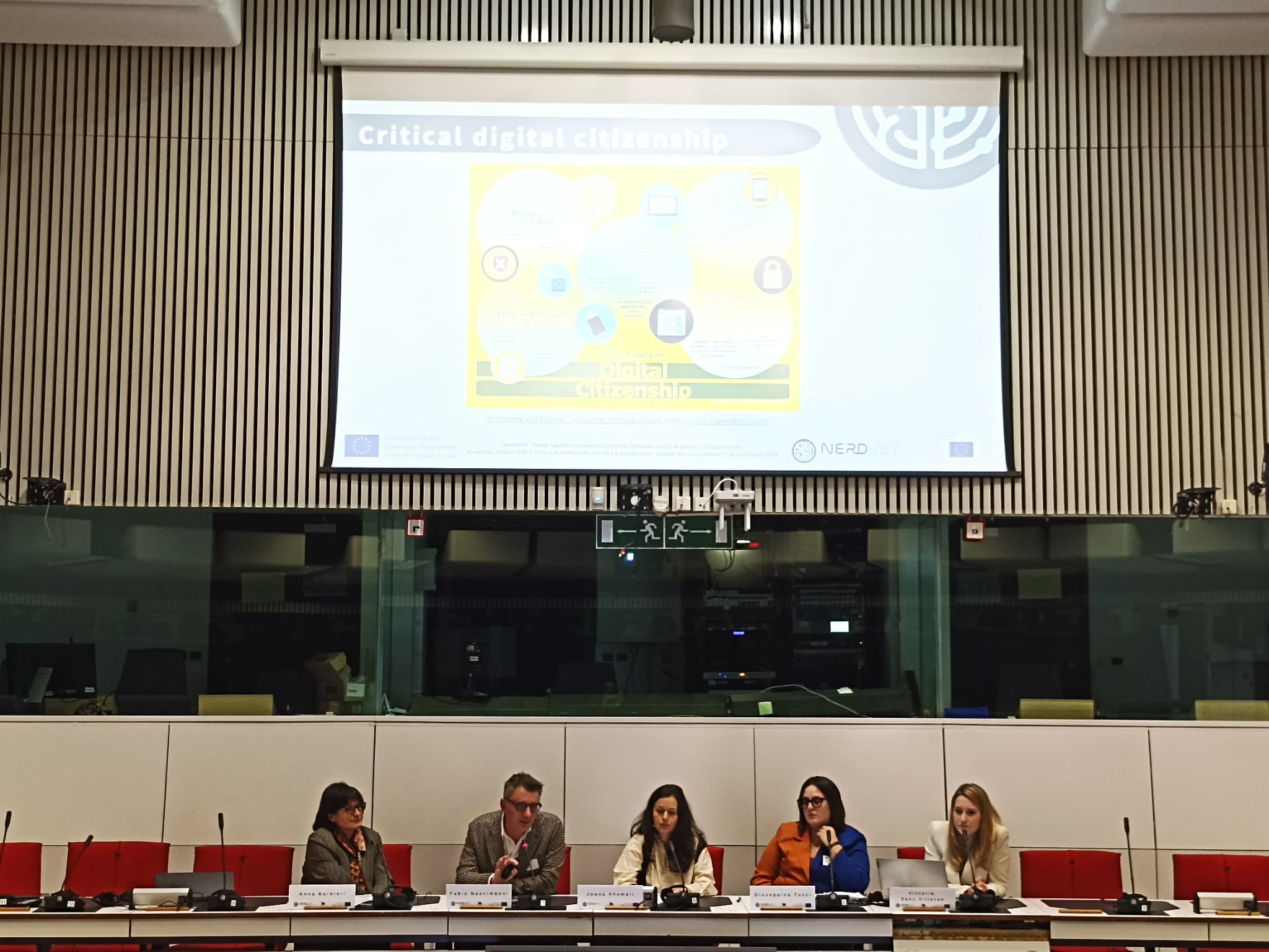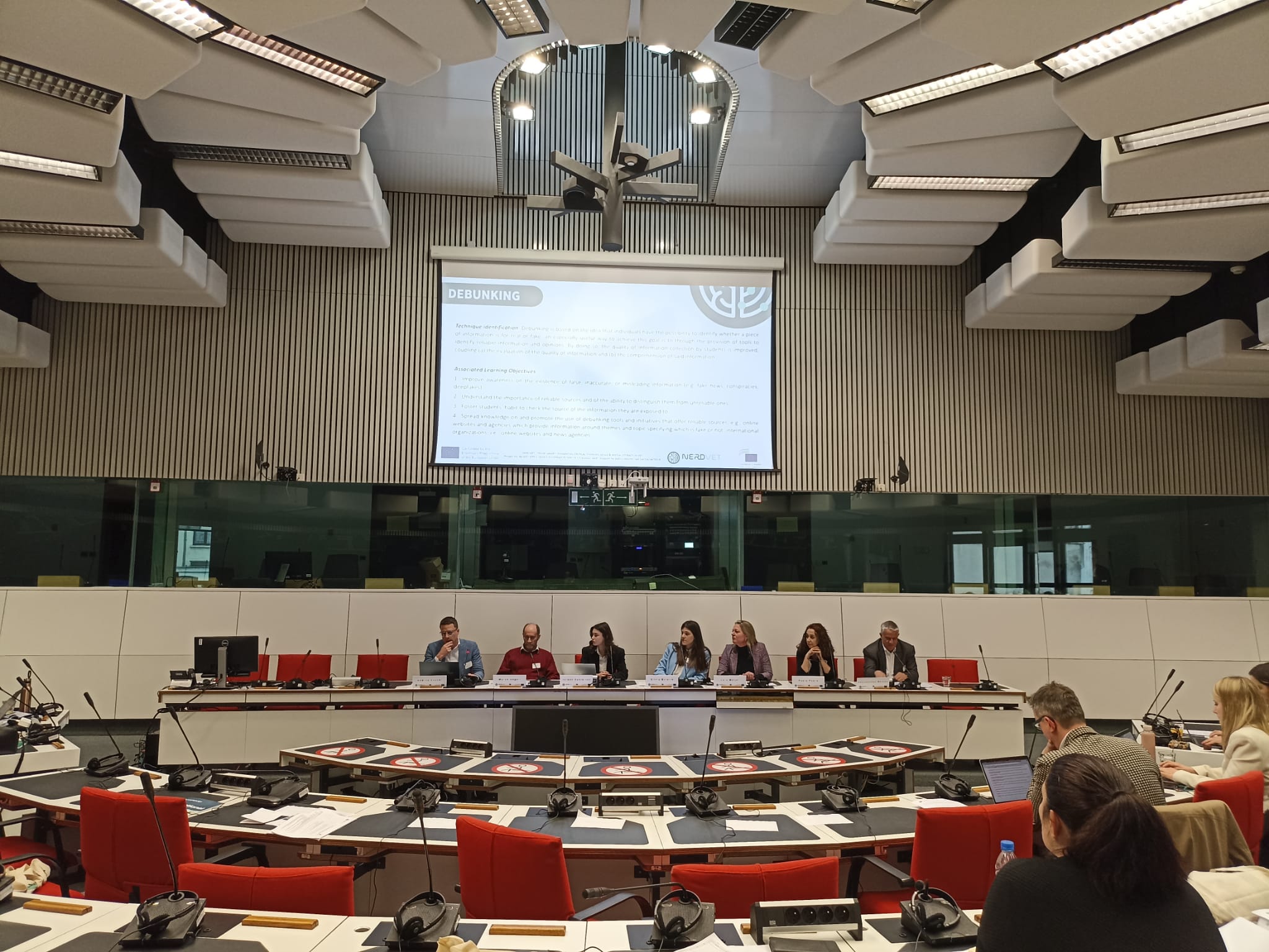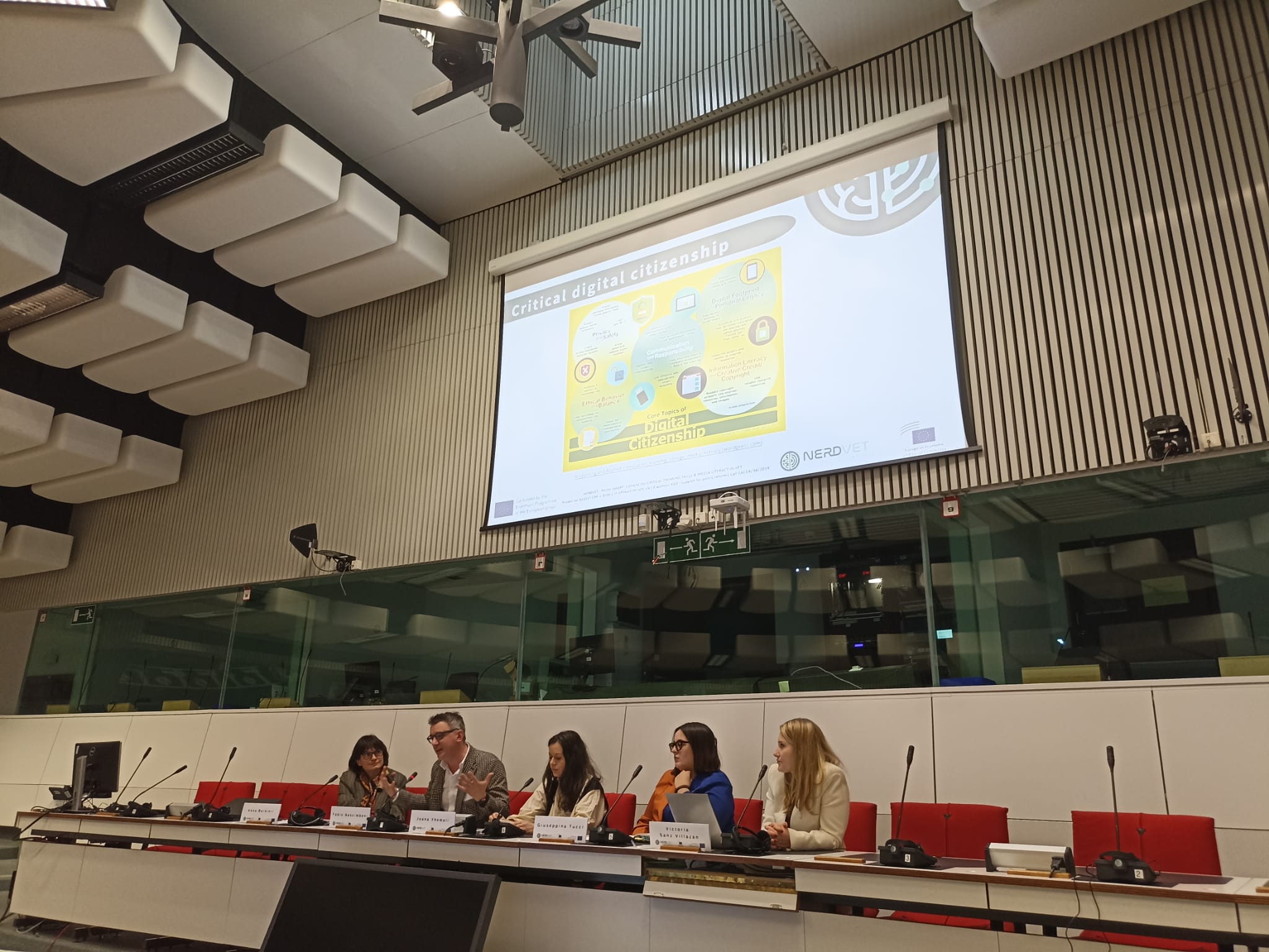 On March 28th, the European Economic and Social Committee hosted the NERDVET project final event, opened by the President of EVTA, Giorgio Sbrissa, and the Director and Secretary General, who welcomed the audience and highlighted the importance of the event for VET. This was followed by a keynote speech from Tatjana Babrauskiene, a Section for Employment, Social Affairs, and Citizenship member, who set the tone for the meeting by introducing the topics of critical thinking and media literacy.